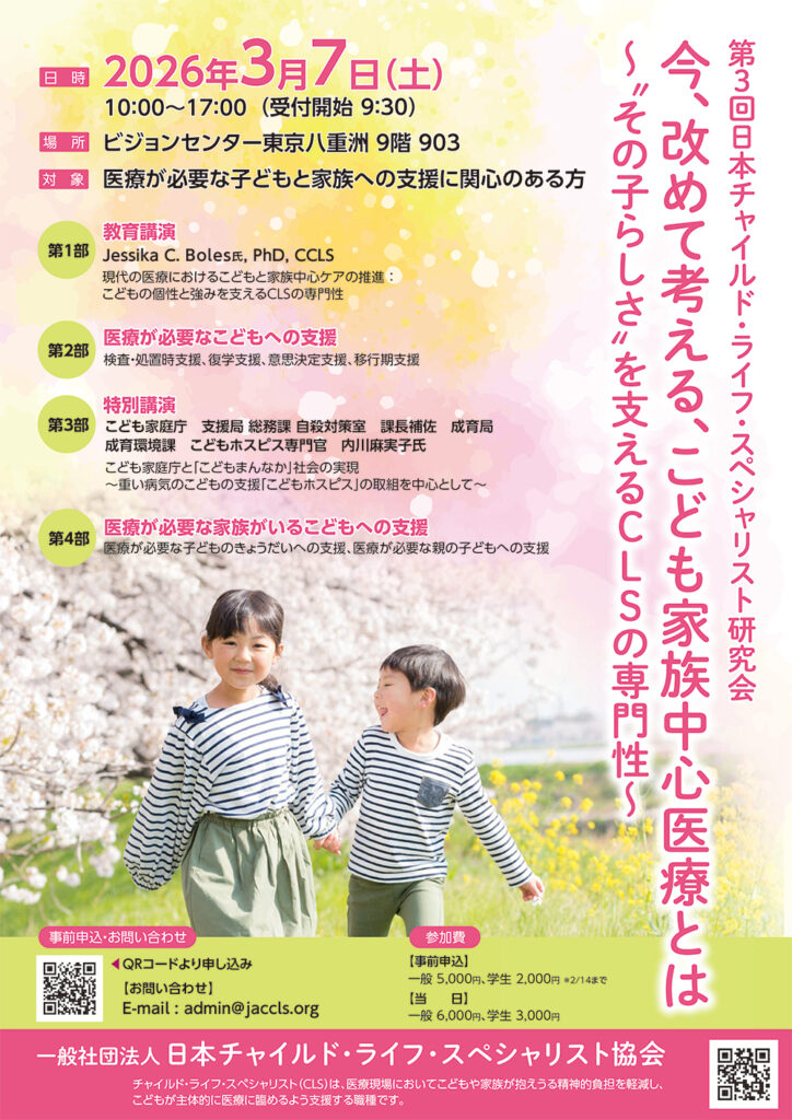 「第3回日本チャイルド・ライフ・スペシャリスト研究会」のお知らせ